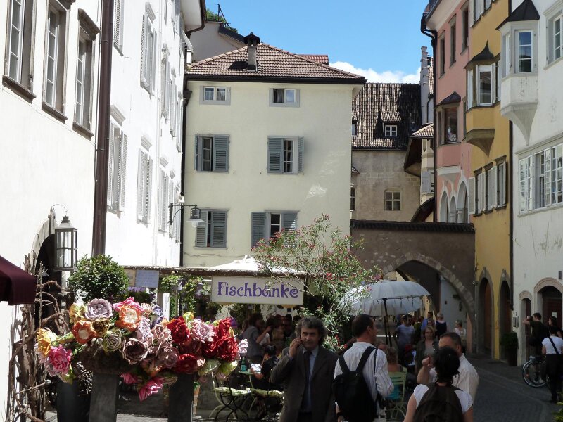 Am Eingang der Dr.-Joseph-Streiter-Gasse, dort wo sich früher der Fischmarkt befand, sind heute die marmornen “Fischbänke” zu finden, eine originelle Straßenkneipe mit zahlreichen Spruchtafeln. Sie eignet sich hervorragend für laue Sommerabende. Einige Meter weiter steht hingegen der Filmclub Bozen, ein kleines Kino mit drei Sälen, in dem auch die “Bozner Filmtage” stattfinden. Wie der Rest des historischen Zentrums handelt es sich auch hier um eine verkehrsberuhigte Zone.