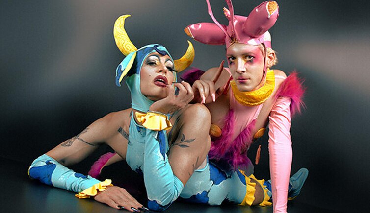 „Queere Tiere“ ist ein Abend zwischen Drag-Show und musikalischem Erzähltheater. Die beiden vielseitigen Musik-Talente Daniel Hellmann und Coco Schwarz treten in ihren Kunstfiguren Soya the Cow und Piano Prince auf und erzählen von der Vielfalt an Sexualitäten, Liebes- und Lebensformen im Tierreich.