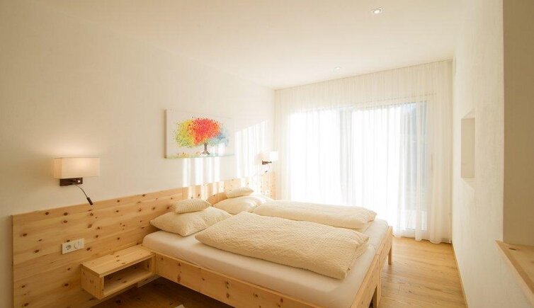 Die 4 großzügigen Ferienwohnungen des Hofes sind mit Naturmaterialien ausgestattet und verfügen jeweils über eine Garderobe, 2 getrennte Schlafzimmer mit einem Doppelbett und 2 Einzelbetten, einen großen Wohnraum mit Sitzecke und Tisch, eine voll ausgestattete Küche, Badezimmer und W-LAN mit Netzfreischaltung in den Schlafzimmern.