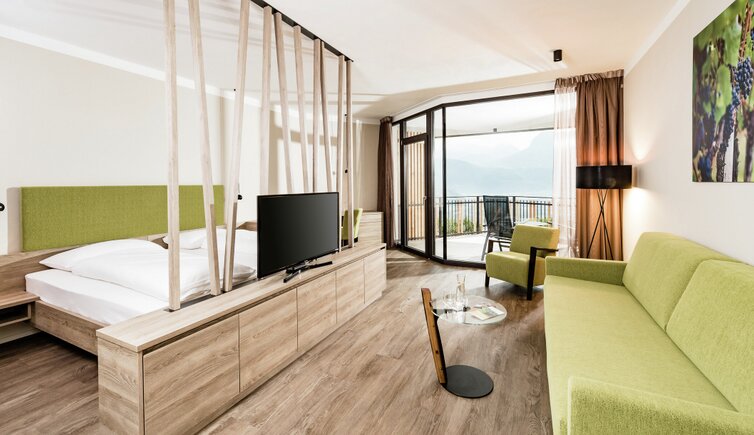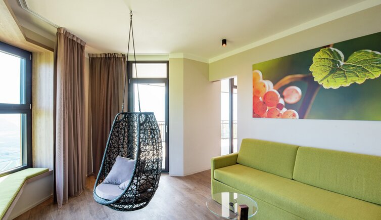 die ruhige Lage inmitten der Weinreben mit einem atemberaubenden Ausblick auf den Kalterer See, die unendlich scheinenden Weinberge und Obstgärten, sanfte Hügel, weite Täler und verträumte Ortschaften.
