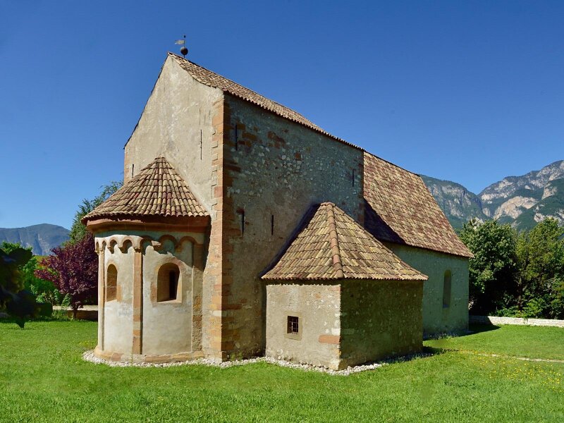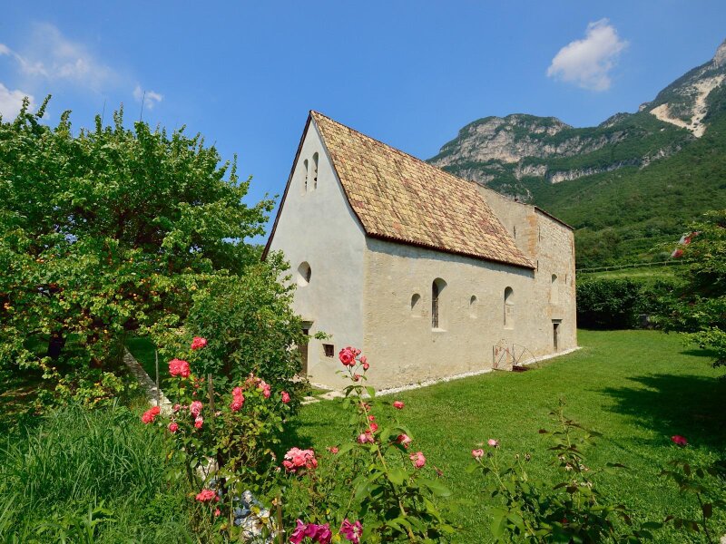 In Laghetti (Laag), a district of Egna, an entire hamlet is dedicated to St. Florian, patron saint of firemen, bakers, chimney sweepers, brewers, gardeners and potters. There, along the old Via Claudia Augusta road, also the little Church of St. Florian is located, said to be built around 1145. It has been documented since 1189, the time when the lower part of the nave was built. There you can still clearly see the old Romanesque building form: St. Florian is considered one of the most important Romanesque buildings of the entire South Tyrolean Bassa Atesina.