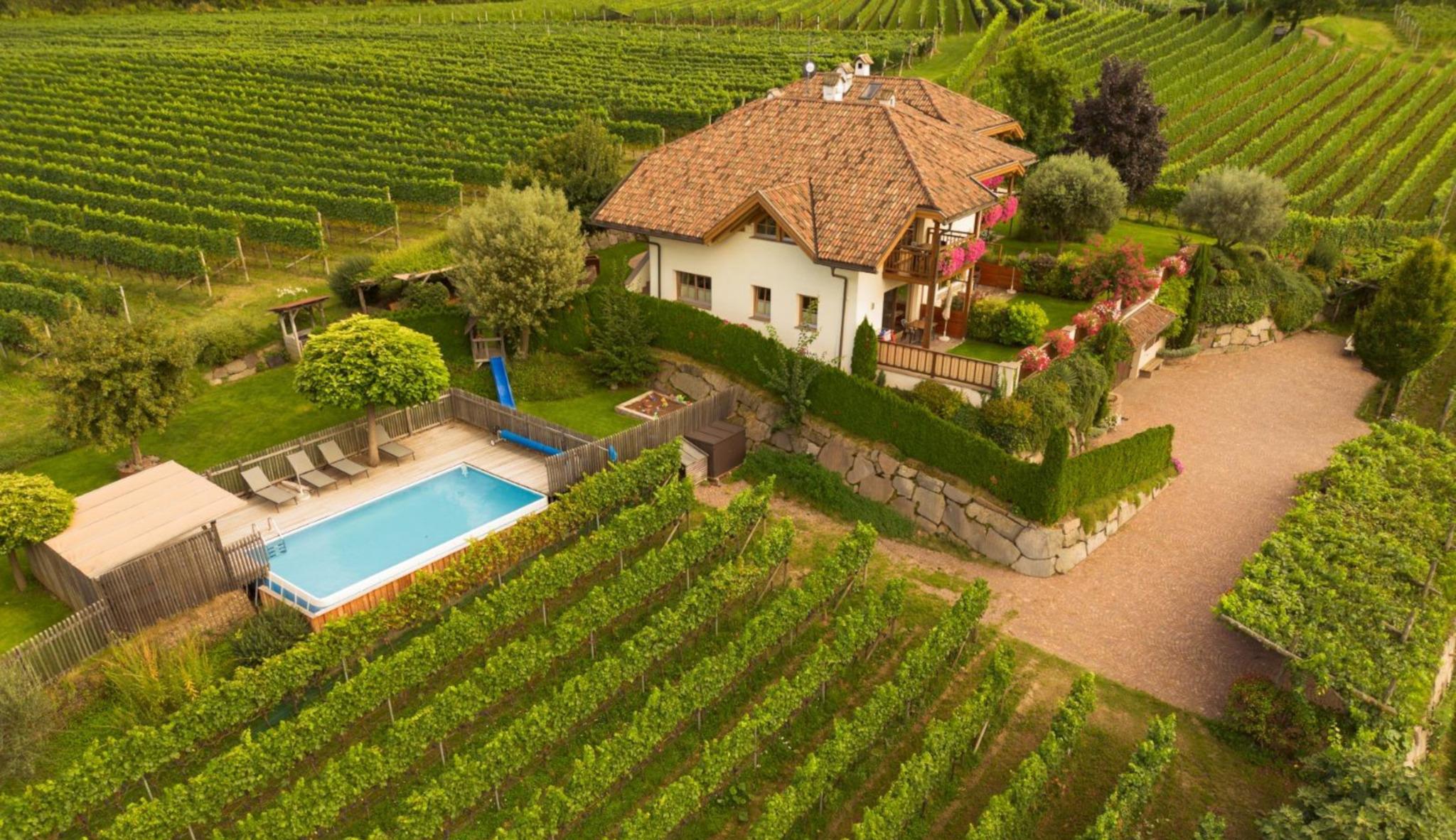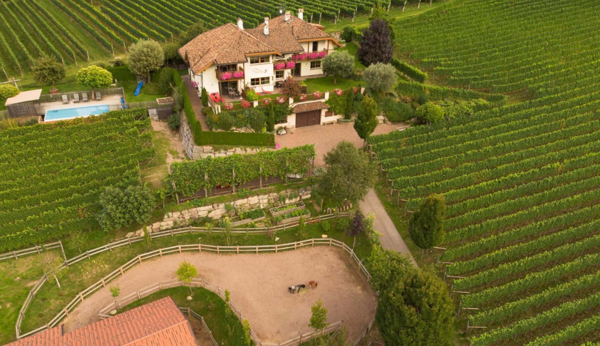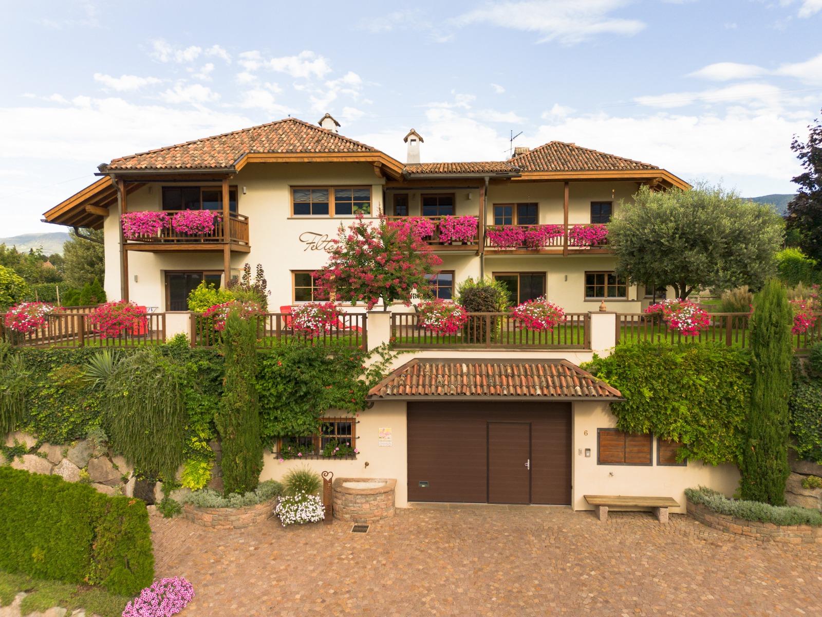 The fruit and wine farm Feltonhof offers four holiday flats and is located in the midst of the farm’s own vineyards in a quiet, sunny location in Cornaiano/Girlan.