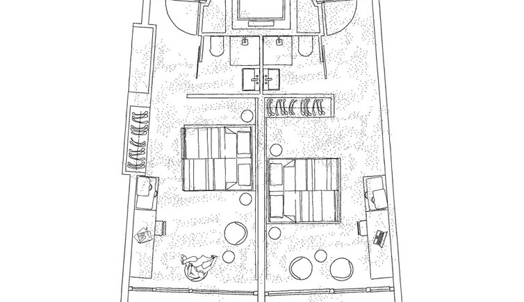 - 28 rooms and 4 suites in 1970s Style, with revamped bathrooms, air-conditioning, wall safe, minibar, flatscreen TV, free wifi, telephone, hairdryer, make-up mirror, swim bag with bathrobes.