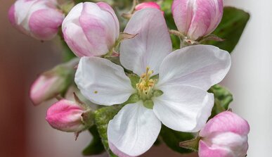 Enjoy the white-pink splendour of the fragrant apple blossoms at the beginning of April, wander through the woods lined with bluebells and watch the lush green buds grow!