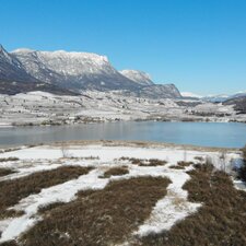 Nel cuore di vigneti e frutteti si trova il lago balneabile più grande dell’Alto Adige e quello più caldo dell’intero arco alpino