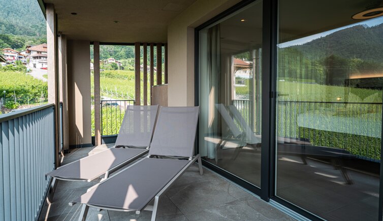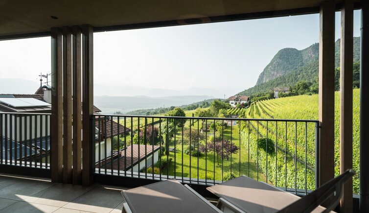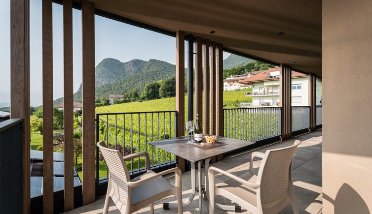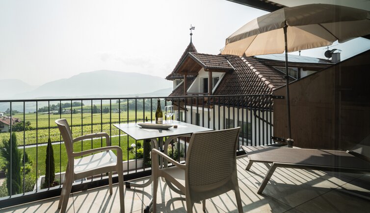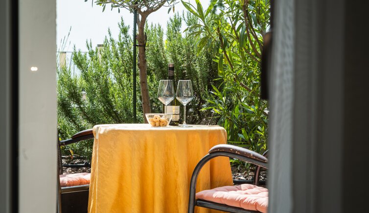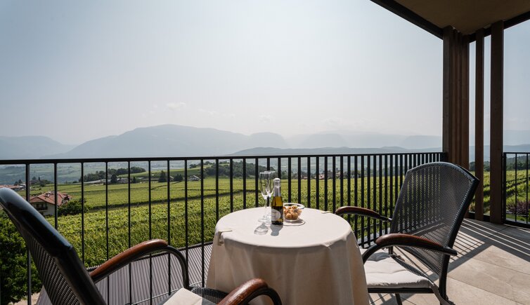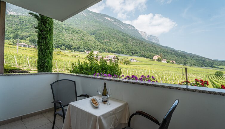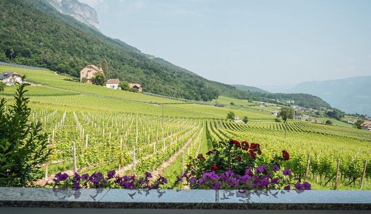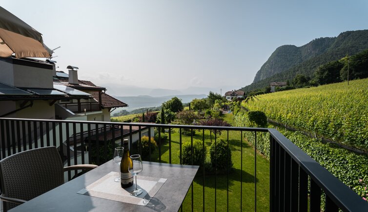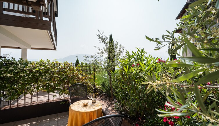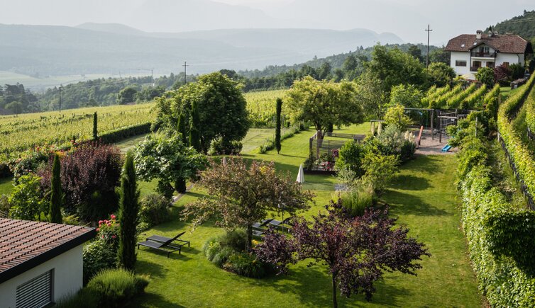 Il prato a forma di terrazze piene di sole ed in stile mediterraneo completa l’area particolare della zona di Appiano sulla Strada del vino particolarmente ricca di castelli e nota per i suoi vini.