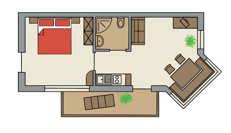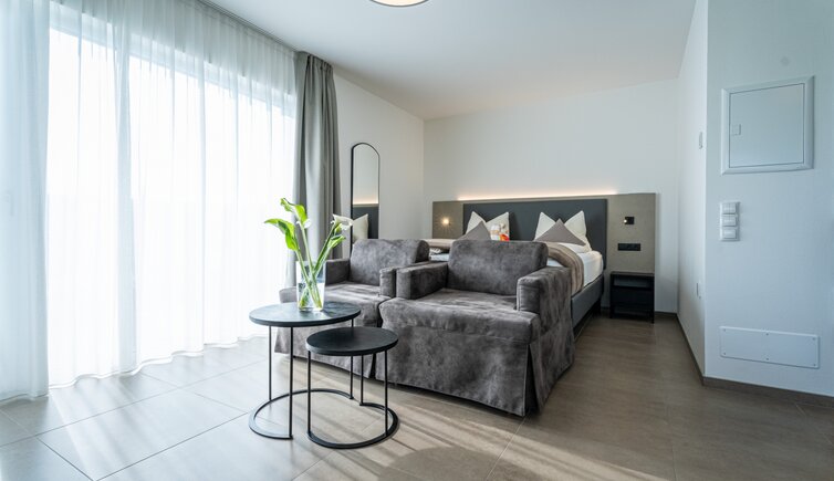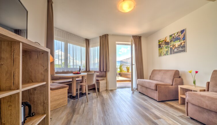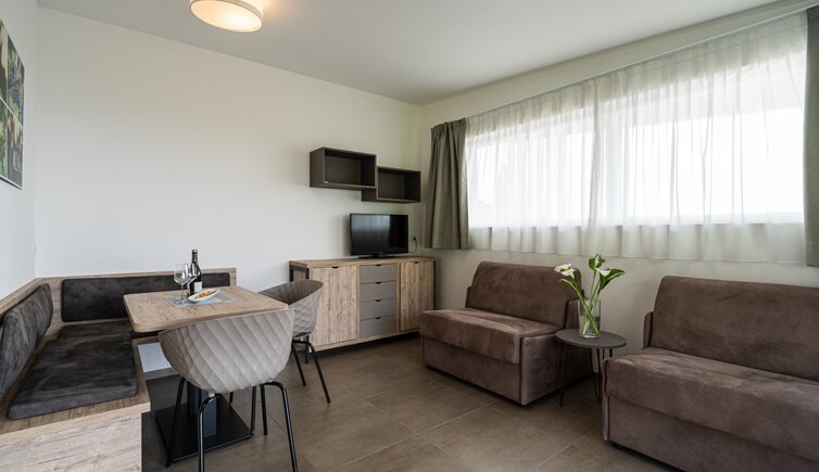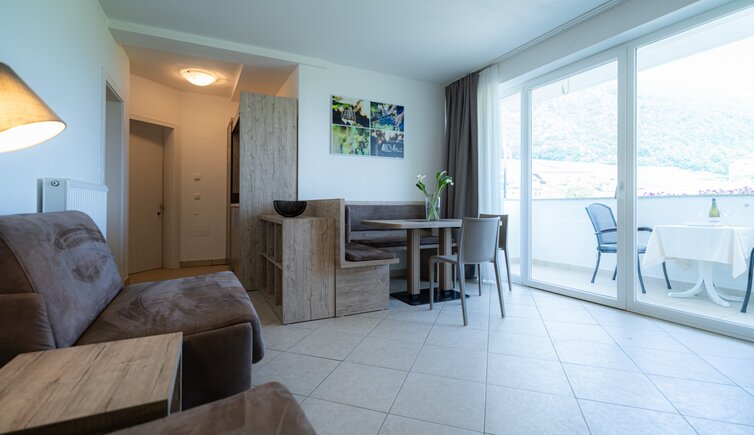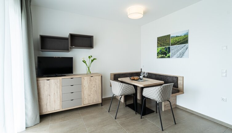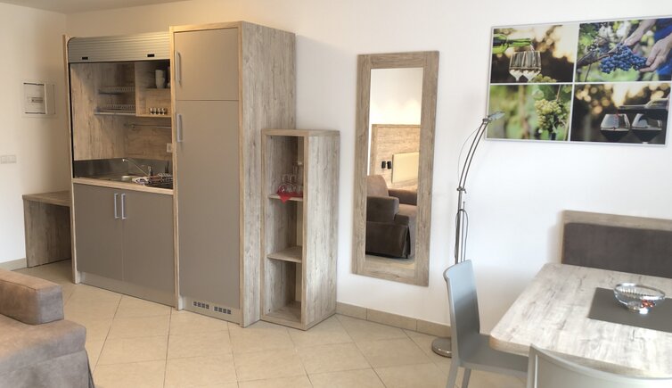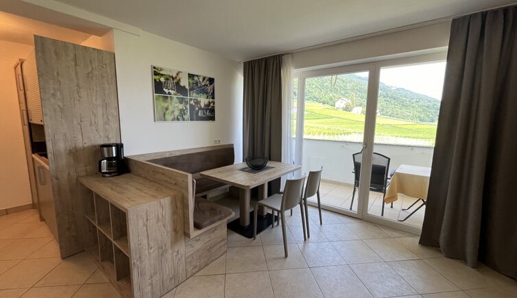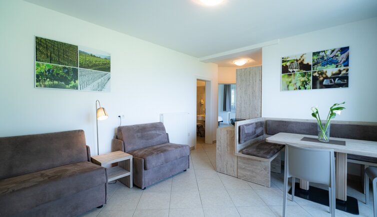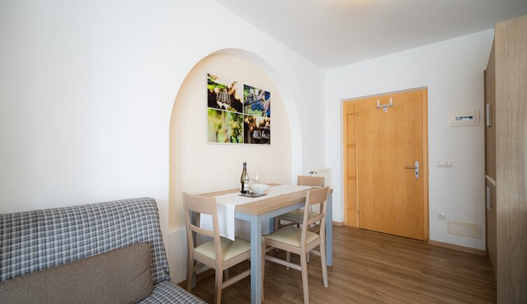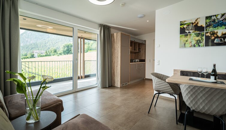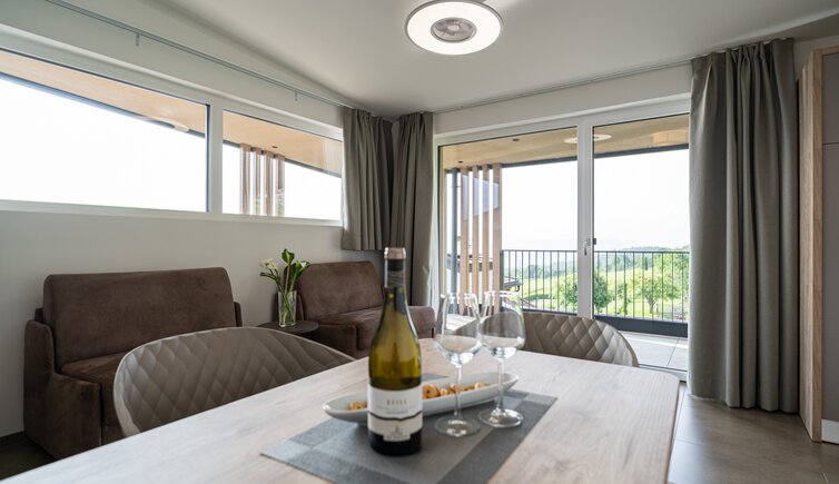 Il prato a forma di terrazze piene di sole ed in stile mediterraneo completa l’area particolare della zona di Appiano sulla Strada del vino particolarmente ricca di castelli e nota per i suoi vini.
