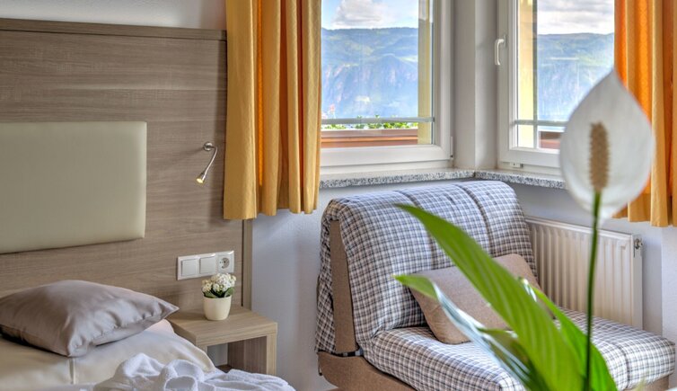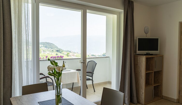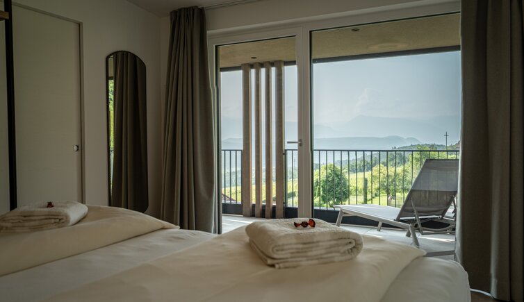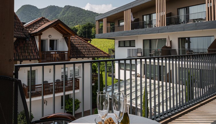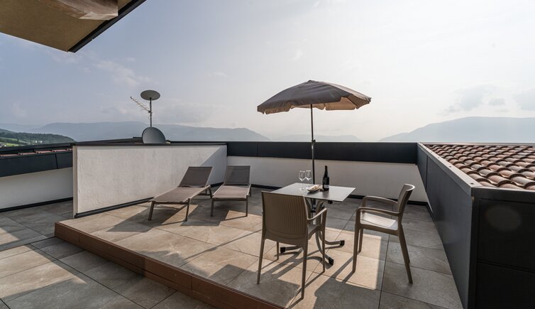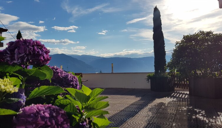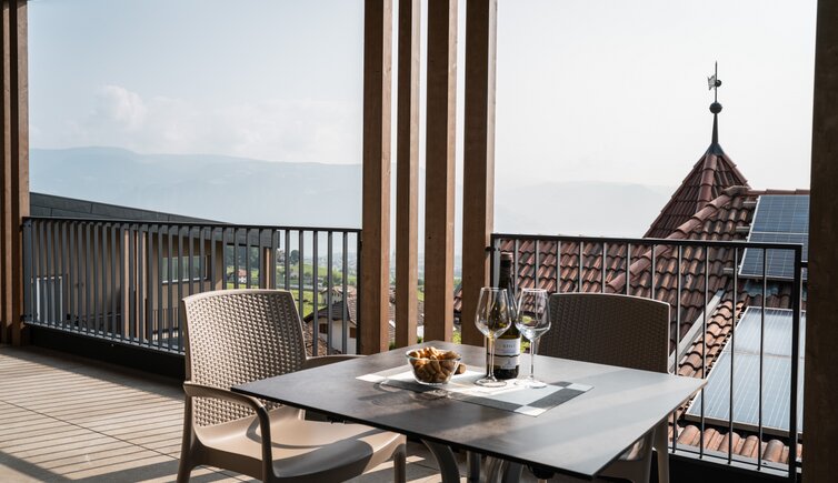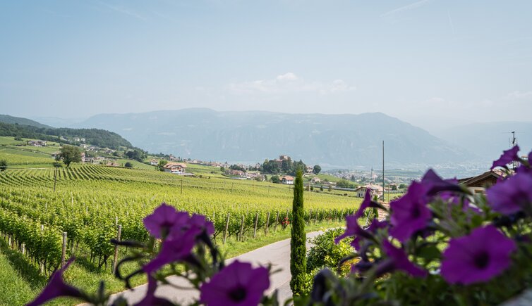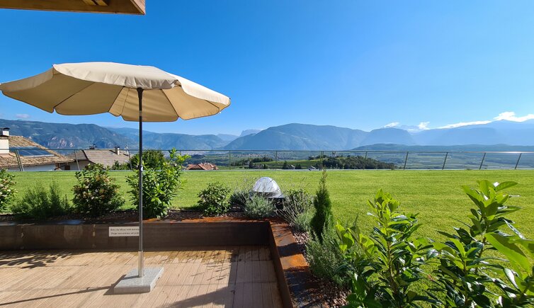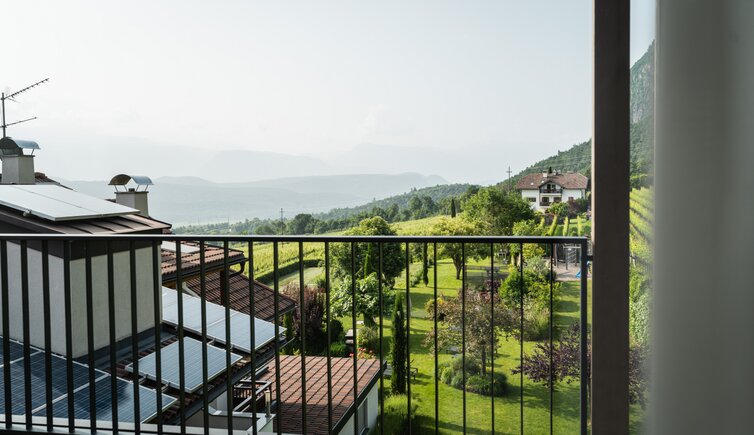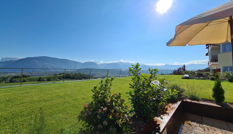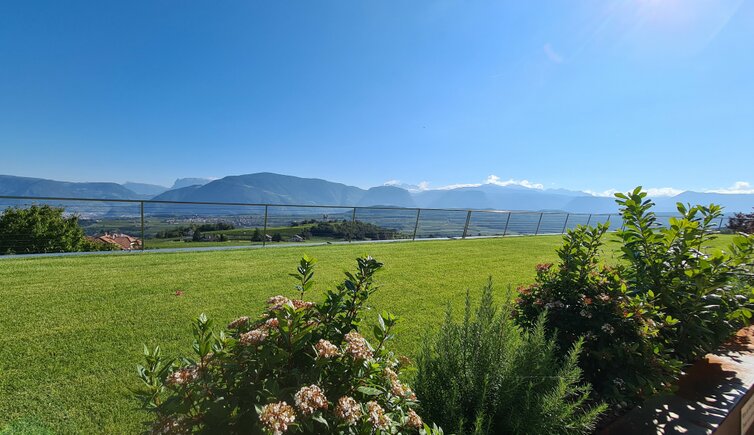 Potete rilassarvi intorno alla piscina nel centro benessere o semplicemente ammirare la stupenda vista verso le montagne circostanti o verso la cittá di Bolzano (ca. 10 km).