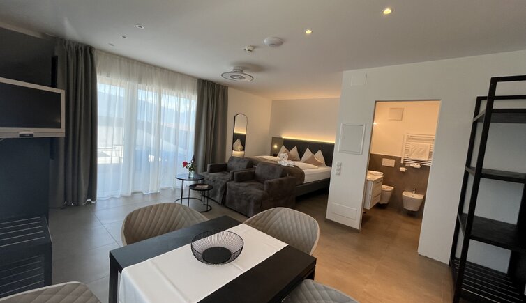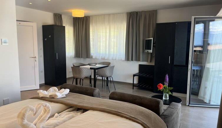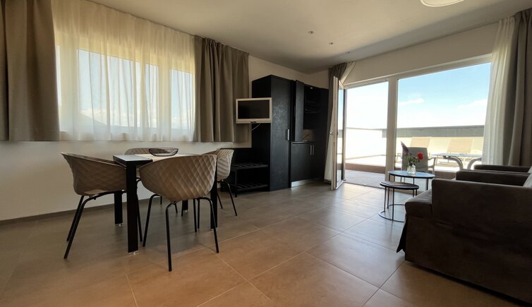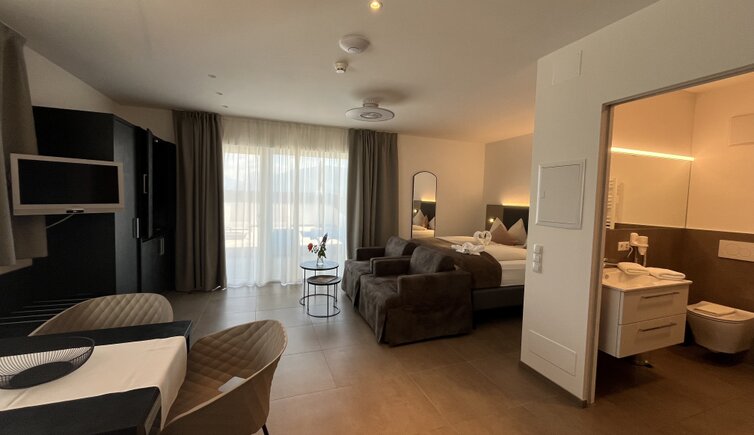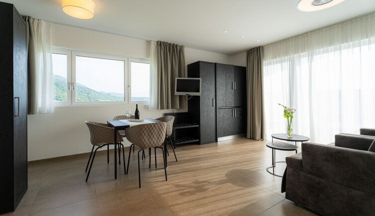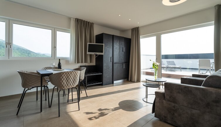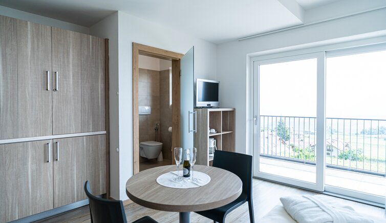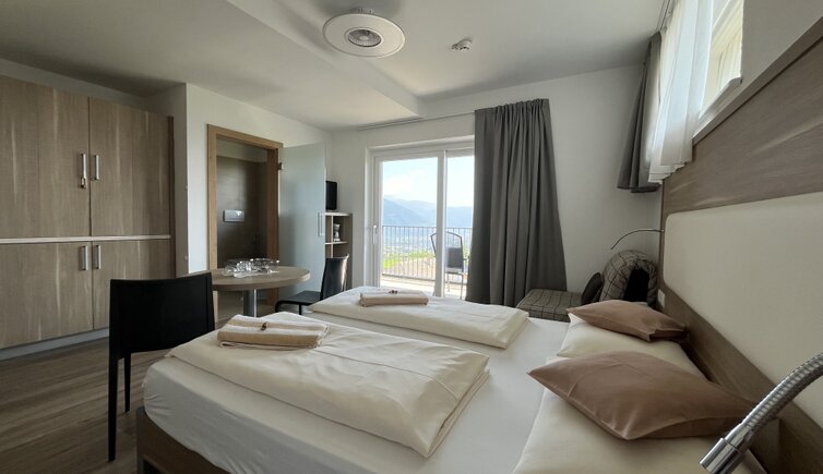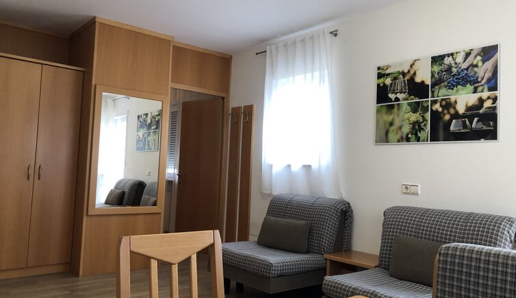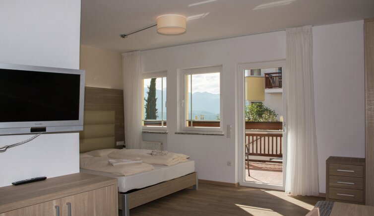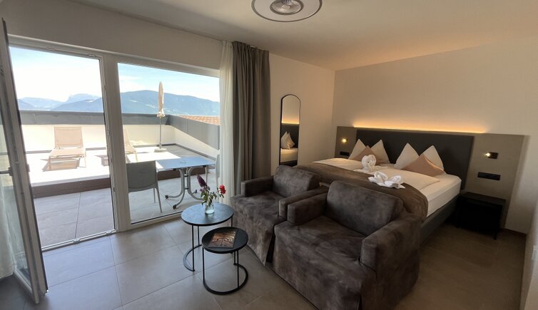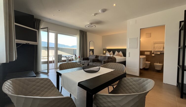 Potete rilassarvi intorno alla piscina nel centro benessere o semplicemente ammirare la stupenda vista verso le montagne circostanti o verso la cittá di Bolzano (ca. 10 km).