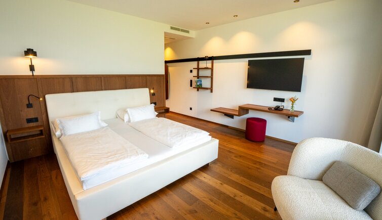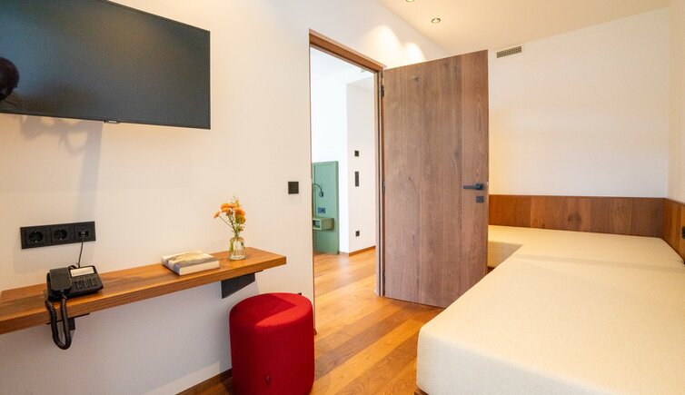 Alcune delle camere sono chiamate con i nomi di alcuni punti panoramici, come la „Chiusa di Salorno“ o la „Suite-Castello“, con vista su Castel Enn.